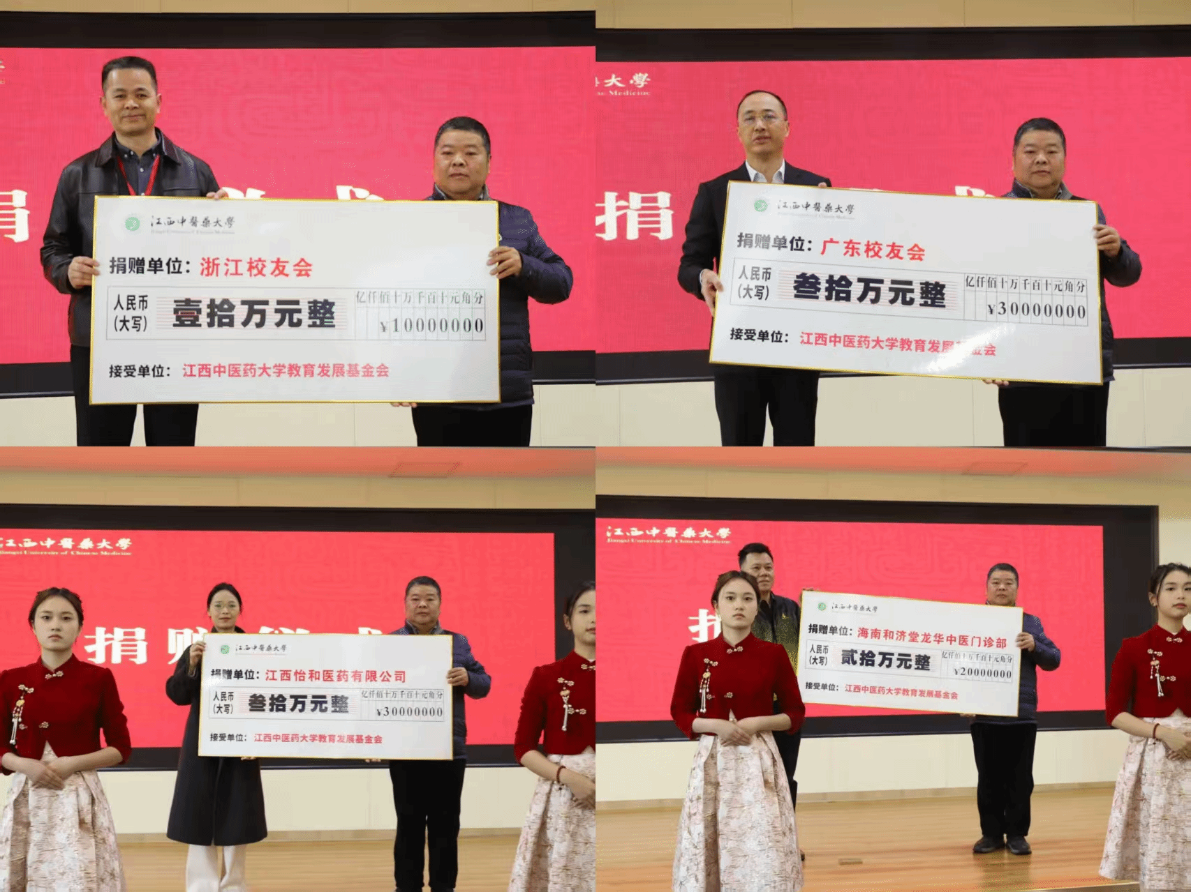 会上,学校教育发展基金会理事长薛铁瑛还为2025年支持学校发展,向学校教育发展基金会慷慨捐赠的广东校友会、浙江校友会、江西怡和医药有限公司、海南和济堂龙华中医门诊部等校友会和校友企业颁发了捐赠证书。